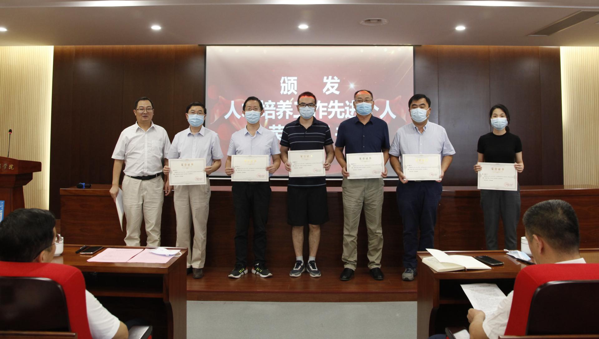 首先,陆春华经理宣读表彰决定,对在本科生、研究生的培养以及创新创业指导等方面取得突出成绩的54位老师进行了表彰。陆春华经理希望受表彰的个人和集体珍惜荣誉、戒骄戒躁,弘扬伟大建党精神,进一步增强责任感和使命感。学院广大教师以他们为榜样,落实立德树人根本任务,切实担当为党育人,为国育才的光荣使命。随后高树军书记、陆春华经理、崔升副经理等学院领导为受表彰的老师颁发了获奖证书。