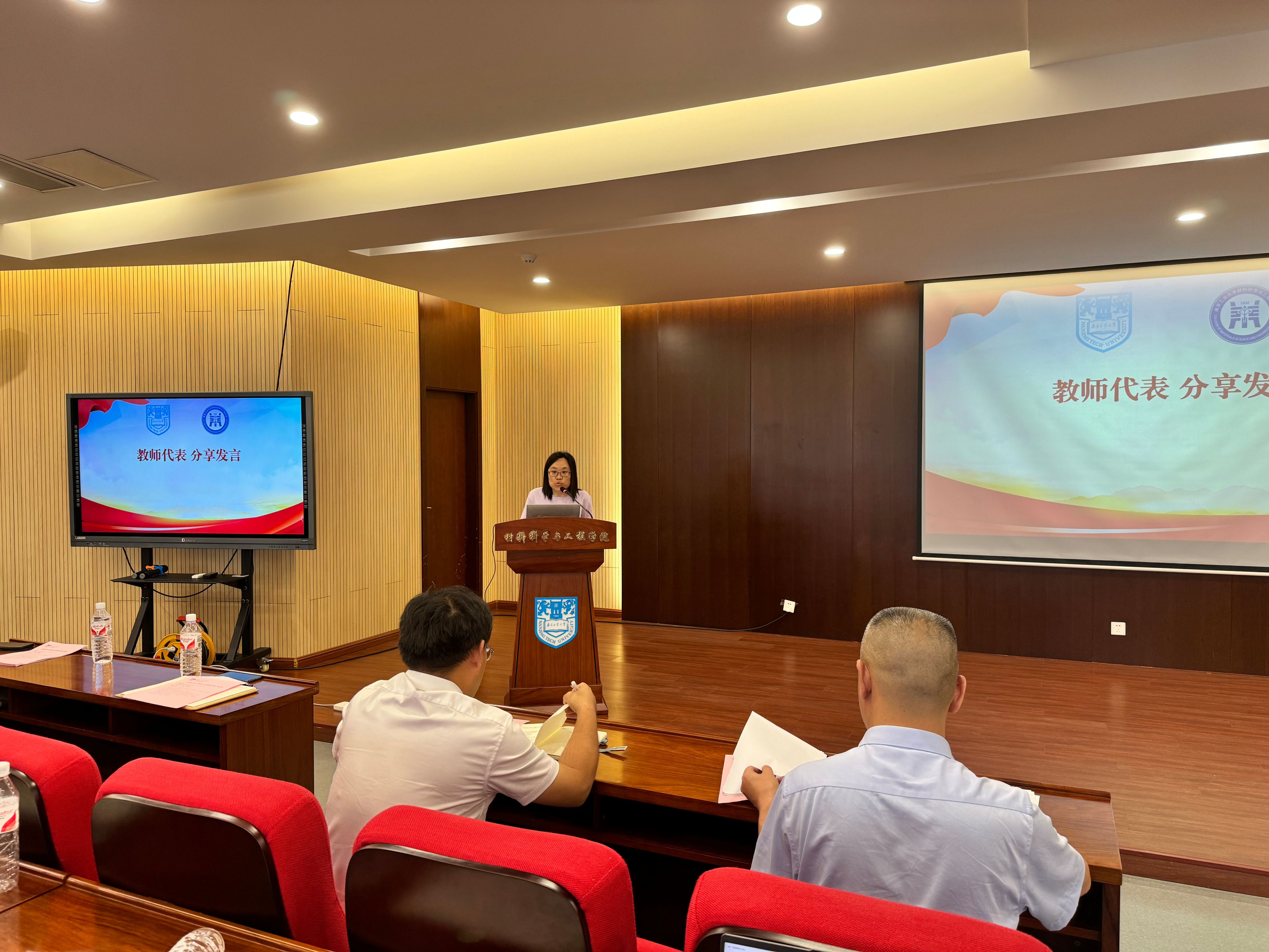 专业建设优秀贡献代表、金属系副主任刘文娟,教学改革先进个人、复材系李旸两位老师分别在会上发言,分享教书育人工作中的感悟。