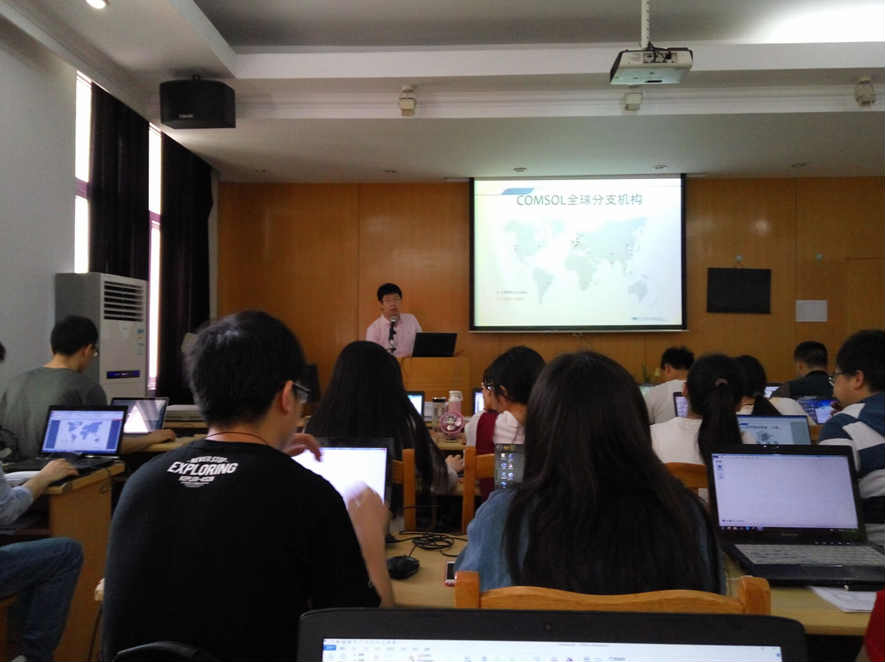2016年5月6-7日,协同创新中心在东南楼320举办了Comsol软件应用技术学习交流研讨会,研讨会邀请了康模数尔软件技术(上海)有限公司工程师王睿博士做经验交流,中心青年教师及员工代表40余人参与了研讨会。