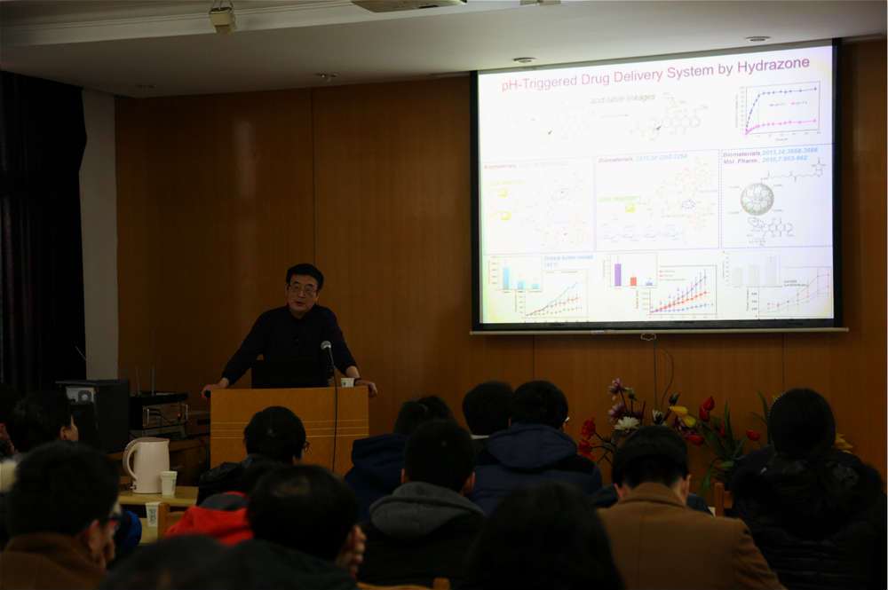 2016年1月11日,学院邀请四川大学顾忠伟教授做“基于生物感知与仿生分子工程的高分子纳米递送系统”的学术报告。报告会由威廉希尔williamhill中文经理沈晓冬教授主持。 顾忠伟教授享受国家政府特殊津贴,连续三次担任国家首席科学家,获生物材料科学与工程Fellow(国家生物材料科学与工程学会联合会授予世界杰出生物材料专家终身荣誉称号)。现任教育部985工程“四川老员工物医学工程与技术科技创新平台”首席科学家、四川大学第二届学术委员会委员、中国协和医科大学中国医学科学院博士生导师;世界生物材料科学与工程学会联合会国际委员会委员、中国生物材料委员会副主席兼秘书长等;曾任国家中长期科学技术发展规划人口与健康战略研究专题组副组长,国家自然科学基金委员会工程与材料科学部专家评审组成员;先后主持国家“七.五”、“八.五”、“九.五”科技攻关、国家自然科学基金重点和面上、国家新药研究基金及国际合作项目等20余项国家级科研项目,以及10余项省级科研项目。 报告以基于生物感知与仿生分子工程的高分子纳米递送系统为主题。介绍了课题研究背景以及目前肿瘤治疗存在的难题,随后顾教授便通过自己的科研项目进行了详细的介绍。对于如何提高药物载体的透过率和靶向性进行了系统讲述,对老师同学们的提问一一解答。最后顾教授特别指出在科学研究中不能放过任何一个细节,对于异样的结果或现象要保持足够的敏锐,深挖到底。顾教授治学严谨的态度让在座的同学们钦佩不已。本次学术报告促进了学院各学科老师之间、研究生之间的交流,凝练了科研成果,活跃了学术氛围,为科研工作的进一步开展起到了积极的推动作用。